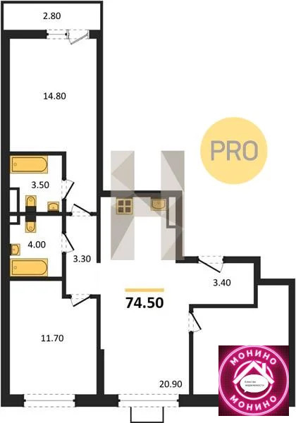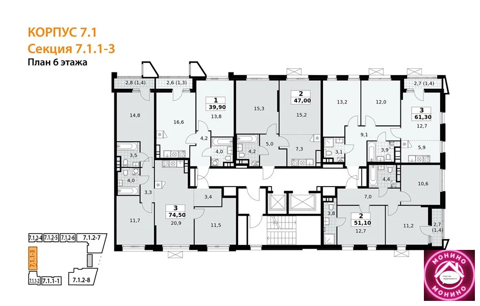Квартира: 3 к 74,50 кв.м., 6 этаж в комплексе Прокшино, 1 очередь, корп.7.1, сдача: 4кв. , этажей: 17, адрес Николо-Хованское дер., д. 7, Застройщик: ГК А101.
