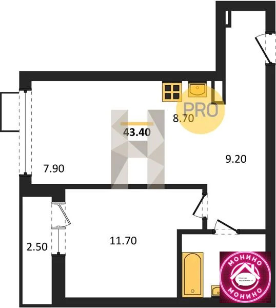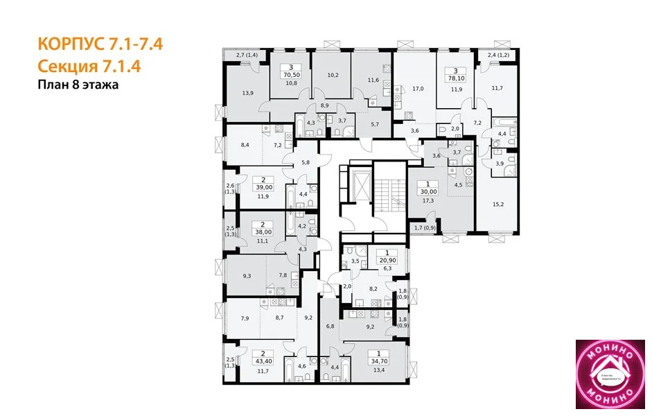 Квартира: 1 к 43,40 кв.м., 8 этаж в комплексе Бунинские Кварталы, 1 очередь, корп.7.1-7.4, сдача: 4кв. , этажей: 19, адрес Столбово дер., д. 7, Застройщик: ГК А101.
