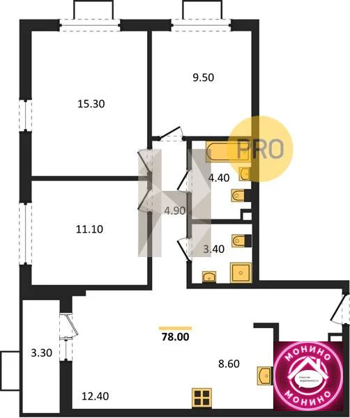 Квартира: 3 к 78,00 кв.м., 2 этаж в комплексе Бунинские Кварталы, 1 очередь, корп.7.1-7.4, сдача: 4кв. , этажей: 19, адрес Столбово дер., д. 7, Застройщик: ГК А101.
