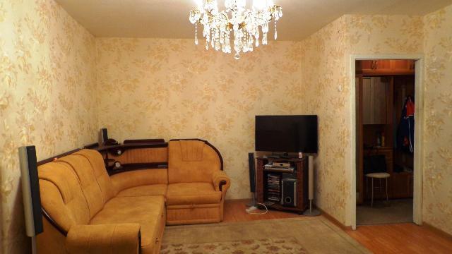 1 этаж 5-этажного блочного дома. Площадь 44,8/30,6/5,2. Комнаты смежные 19,4 и 11,2 кв.м. Санузел совмещен, без балкона, установлены решетки на окнах. Не угловая. Квартира в хорошем состоянии, сделан косметический ремонт. Качественная металлическая входная дверь, ламинат. В спальне есть большой шкаф-купе, квартира продается с мебелью.