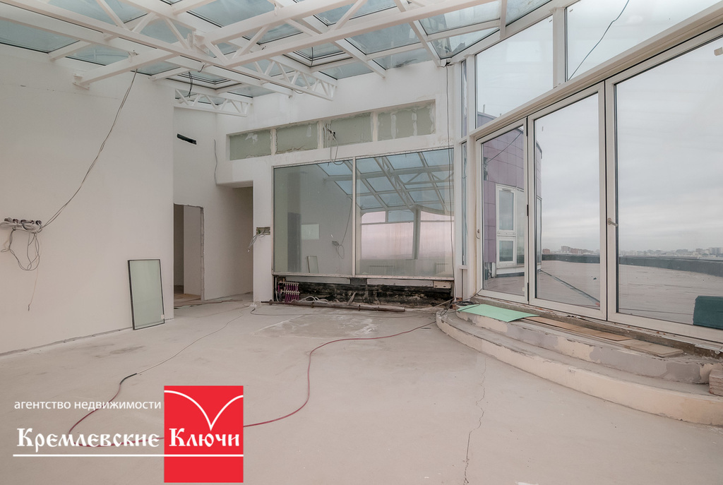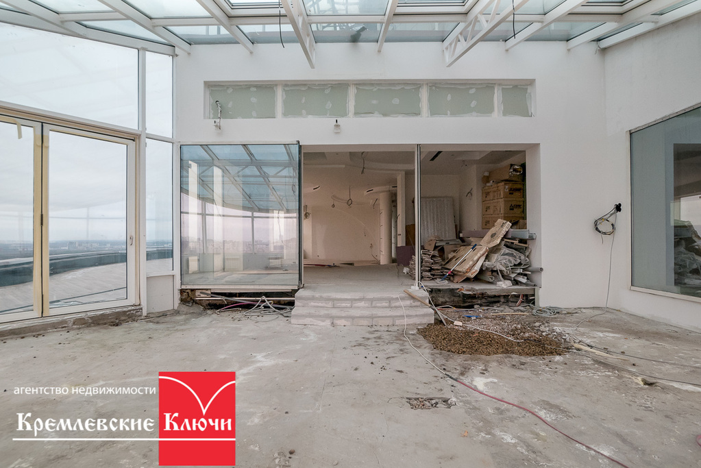 Семикомнатный пентхаус в ЖК премиум-класса «Миракс парк». Общая площадь 380 м2 + открытая веранда площадью 104м2. Выполнен ремонт под чистовую отделку из высококачественных материалов, установлена электропроводка, система кондиционирования, отопления, видеонаблюдения и остекления. Видовая квартира, высота потолков составляет пять метров. В общую площадь входят две остеклённые и отапливаемые террасы площадью 138 м2, также пентхаус состоит из кухни- гостиной 80 м2, 6 комнат, 3 санузлов, прачечной, гардеробной. В комплексе реализована территория без авто, контактный зоопарк, прогулочные зоны, детский садик, рестораны и салоны красоты, рядом Тропарёвский лесопарк. Более трех лет в собственности.