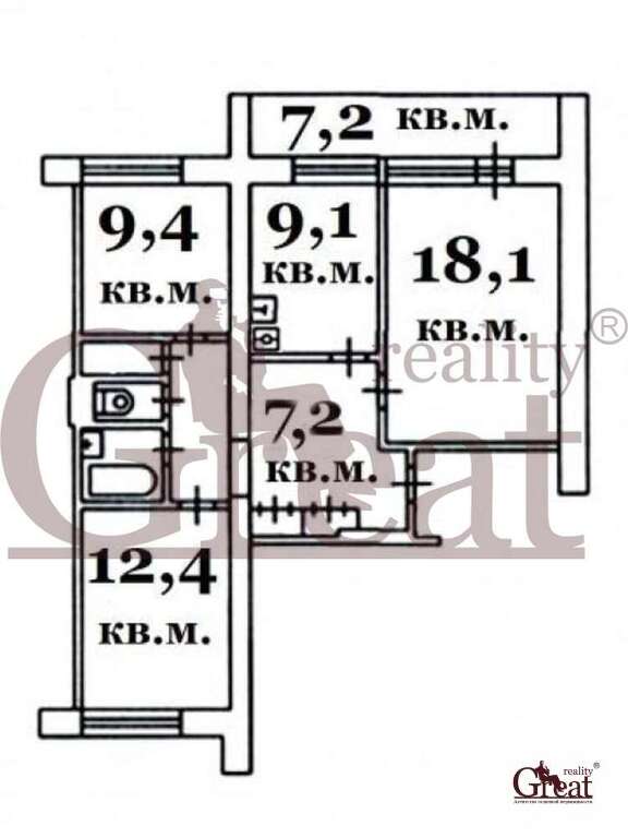Квартира рядом с метро. Комнаты изолированные: 18,1 кв.м, 12,4 кв.м, 10 кв.м. Большая застекленная лоджия. Окна выходят на две стороны.