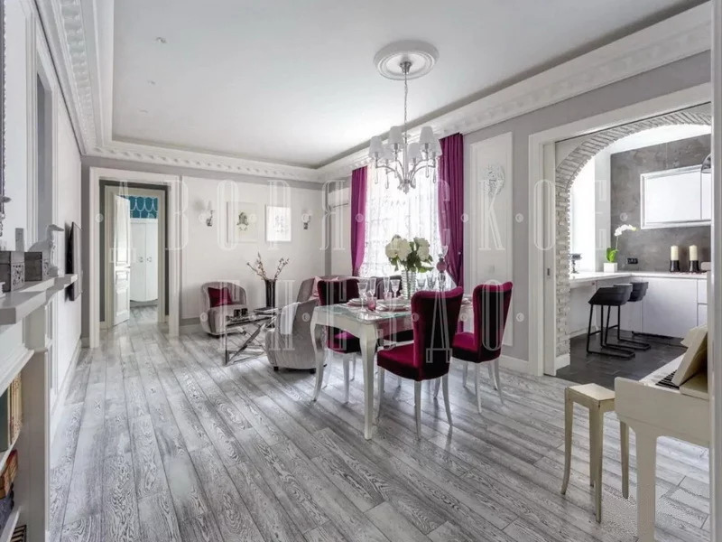Предлагается к продаже трех комнатная квартира с новым дизайнерским ремонтом, общей площадью 124 кв, м. Функциональная планировка: гостиная, кухня-столовая, две спальни, большая гардеробная, два санузла, балкон. Квартира полностью меблирована и оборудована бытовой техникой от лучших мировых производителей. Квартира после капитального ремонта, заменены все трубы, проводка, новые окна, двери, полы, мебель. Окна выходят во внутренний двор, очень тихо. Высота потолка 3,3 м. Кирпичный двух подъездный дом на 66 квартир построен по индивидуальному проекту в 1905 году. Полная реконструкция в 1996 г с заменой перекрытий на железобетонные, расположен в ЦАО г Москвы, район Хамовники ул, Пречистенка д.40/2с4. В шаговой доступности три станции метро, удобный выезд на Содовое кольцо. В доме консьерж, видеонаблюдение по периметру дома и в подъезде. Въезд на территорию под шлагбаум, охрана, во дворе можно ставить машины для жильцов дома. Собственность более трех лет, свободная продажа.