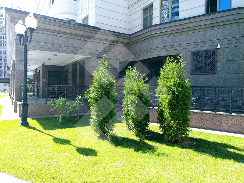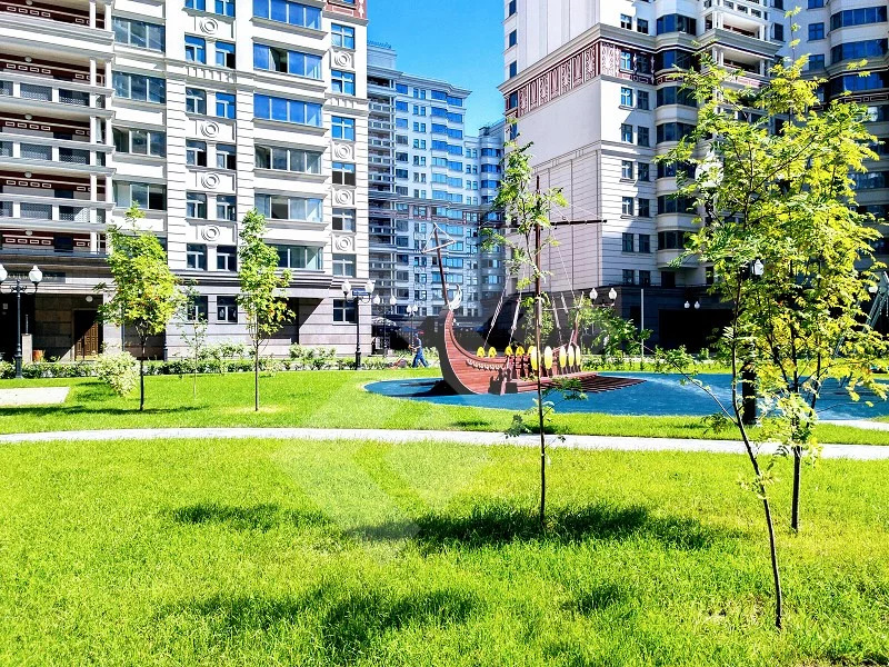 Концепция комплекса - двор без машин. Пропускная система, охраняемая территория, подземный паркинг.