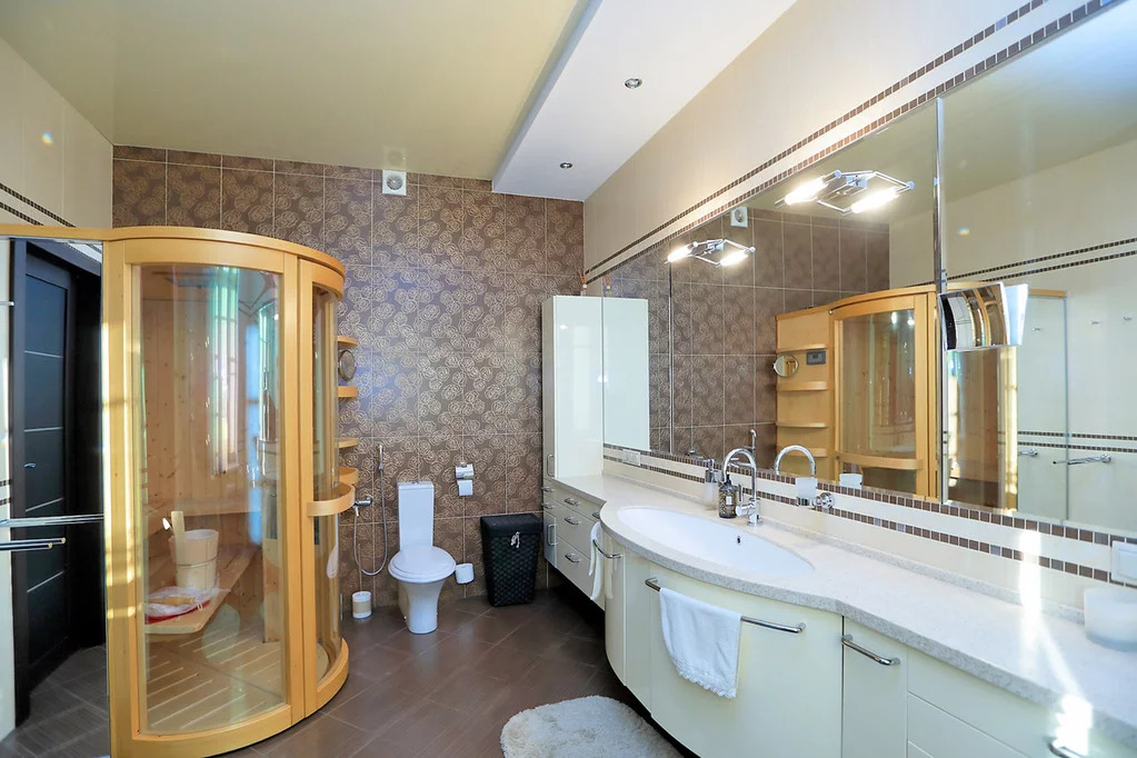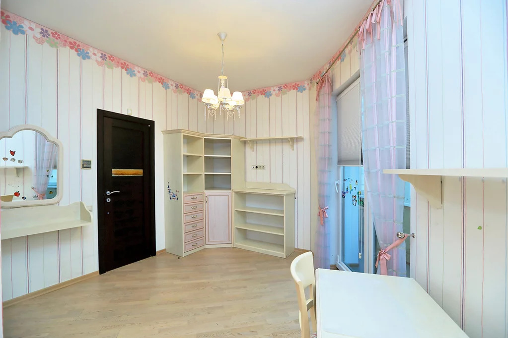 Продается просторная пятикомнатная квартира в малоэтажном монолитном ЖК «Изумрудная долина», бизнес-класса переменной этажности, построенном по индивидуальному проекту, застройщика Галс-Девелопмент в 2006 году. В Кунцево хорошая транспортная доступность сочетается с "закрытостью" придомовой инфраструктуры, которая защищена от выхлопов и шума близлежащих станций метро зелеными насаждениями. В районе 17 общеобразовательных и три частные школы, три лицея и одна гимназия, музыкальная школа. Ключевой особенностью района считаются огромные лесные массивы, а также речные пляжи на берегу Москвы-реки. Хорошая экологическая обстановка обусловлена зеленой территорией Ромашкинского леса, по району протекает Москва-река. Рядом находится популярное место отдыха «Серебряный Бор». Отличное расположение ЖК на просторной закрытой благоустроенной охраняемой территории с подземным паркингом со своей авто мойкой (есть 2 машиноместа в наличие). Приличное окружение, приятная входная группа, две квартиры на этаже. В квартире выполнен ремонт из качественных строительных материалов: пол - паркетная доска в комнатах и плитка на кухне, потолки – подвесные двухуровневые, стены – окрашены, с деревянным и кирпичным панно, межкомнатные двери – дерево, окна – стеклопакет, импортная сантехника. Функциональная распашная планировка: кухня – гостиная с эркером 55 кв.м, гостевая комната 10 кв.м, гостевой санузел, две детские со своими гардеробными 15.4 + 17.9 кв.м и двумя лоджиями, мастер спальня 18.4 кв.м со своим санузлом и лоджией. Потолки 3,05. Окна выходят на две стороны в зеленый двор. Квартира с мебелью и техникой, встроенные шкафы и оборудованные гардеробные, встроенная итальянская кухня Del Tongo под единой столешницей с техникой Miele (духовой шкаф, посудомоечная машина, микроволновая печь), холодильником Liebhher, кондиционеры и приточновытяжная вентиляция, стильные предметы интерьера, видео домофон, сигнализация. Собственность на основании договора инвестирования 2012 года, 1 взрослый собственник, прямая продажа.