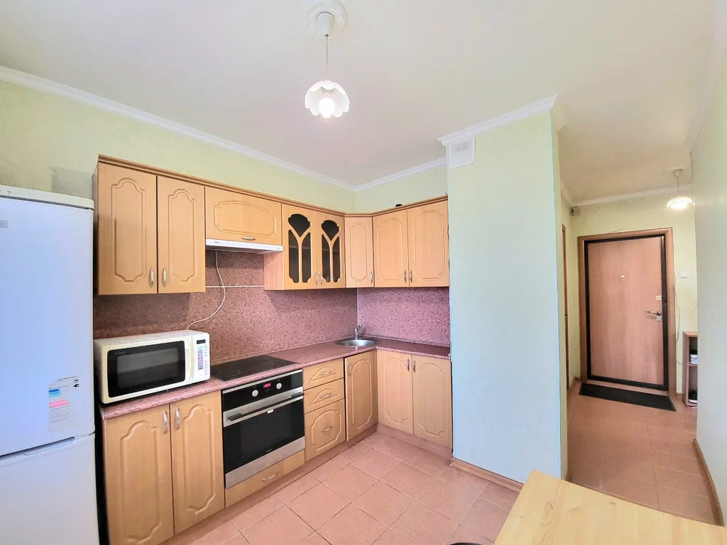 Однокомнатная квартира в отличном состоянии, в доме, расположенном в зеленом районе Москвы с очень богатой и развитой инфраструктурой. Рядом есть всё: многоуровневый паркинг, школы, детские садики, банки, кафе, магазины, церковь, бассейн, "Мои документы ", красивые прогулочные зоны и т.д.