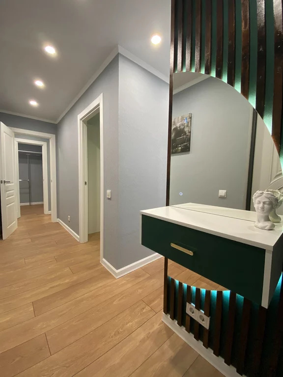 Хороший новый дизайнерский ремонт из качественных и дорогих материалов и дорогой техникой.