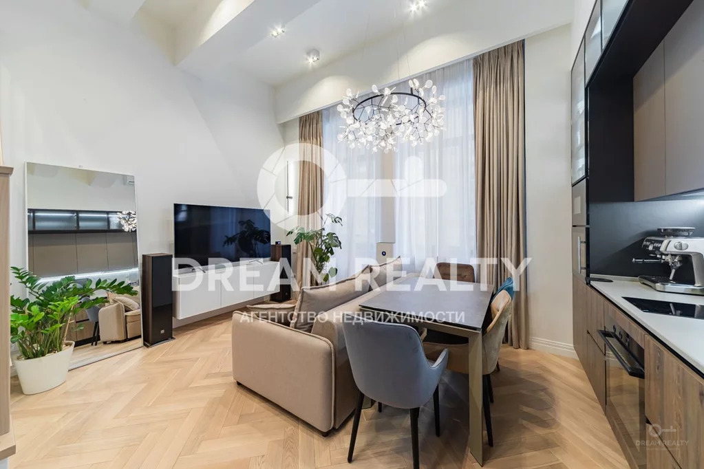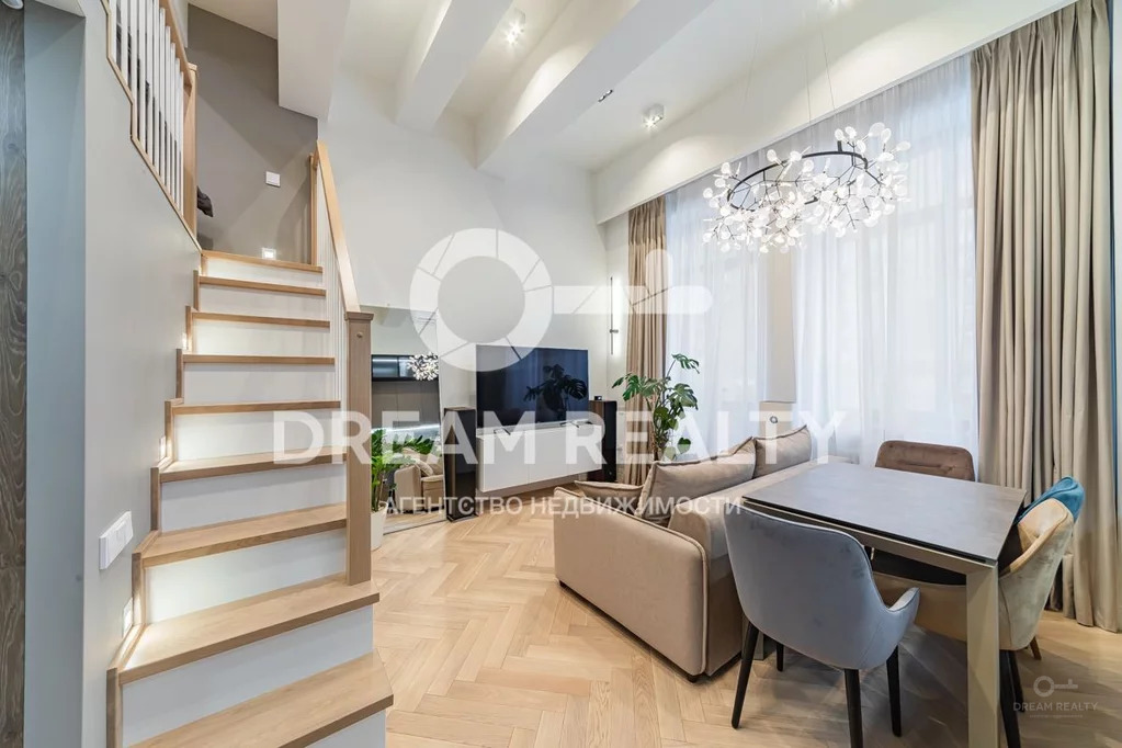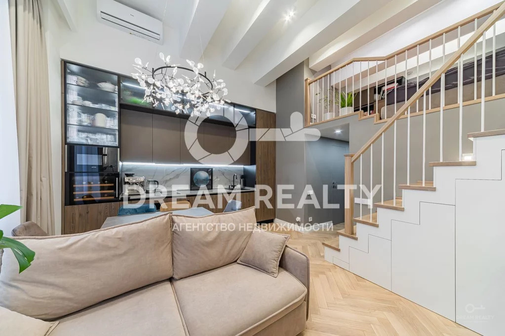 Id 6702. Вашему вниманию предлагается роскошный апартамент в современном жилом комплексе Loft fm, расположенный в ЦАО Москвы. Общая площадь с учетом второго уровня 44 кв.м, грамотное дизайнерское решение позволило организовать функциональные зоны, сделать пространство квартиры максимально эргономичным и включает в себя: кухню-гостиную с потолками до 4 м, спальную зону на втором уровне, полноценный санузел, гардеробную комнату.