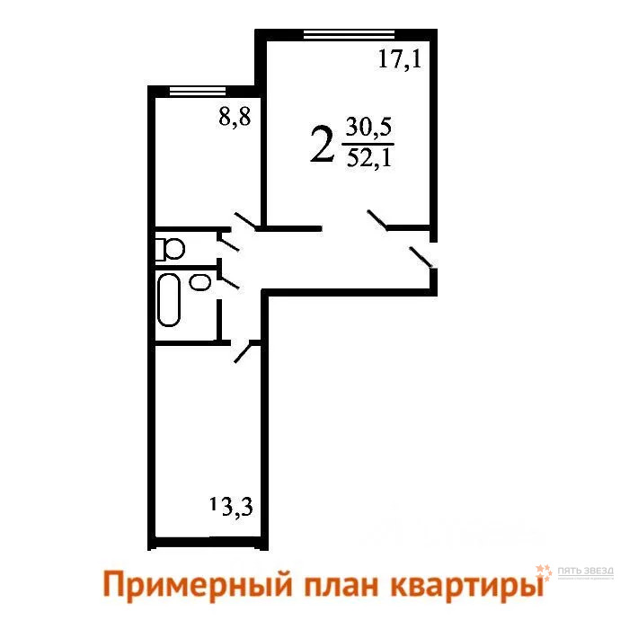 * Площадь: общая 52, 3 кв. м, жилая 30, 4 кв. м.