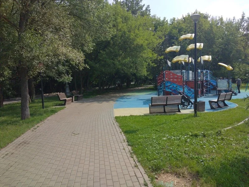 Детская площадка, парковка для машин.