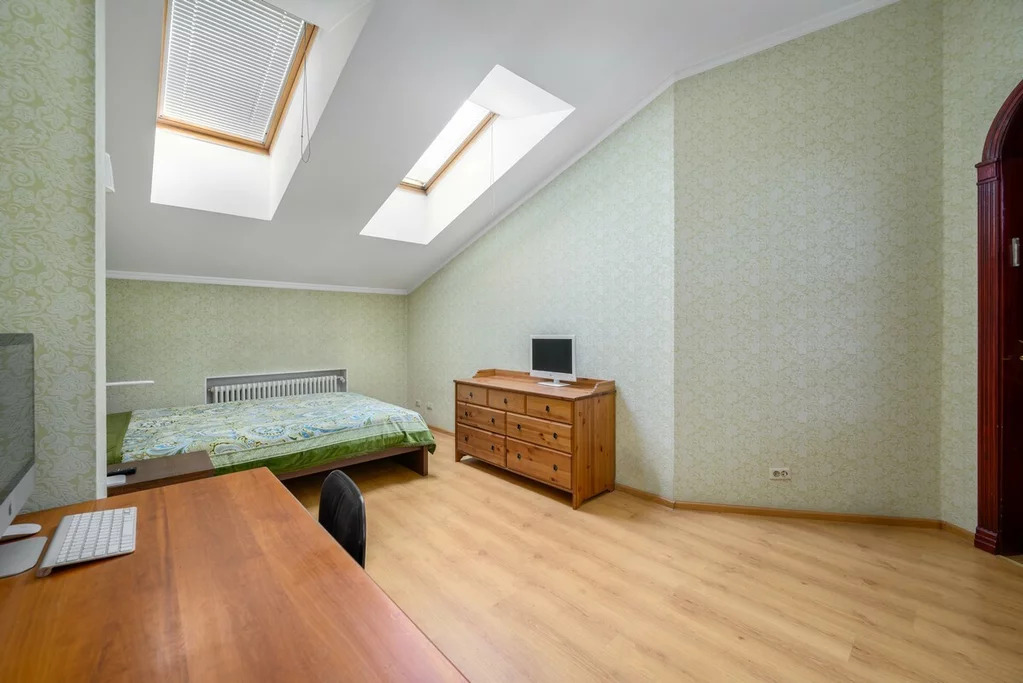 На втором мансардном этаже: три изолированные спальни (19 – 14 – 26 кв.м), холл 25 кв.м, совмещённый с/у 25 кв.м. с гидромассажной ванной и финской сауной.