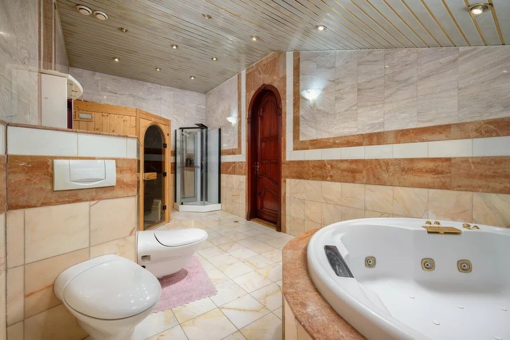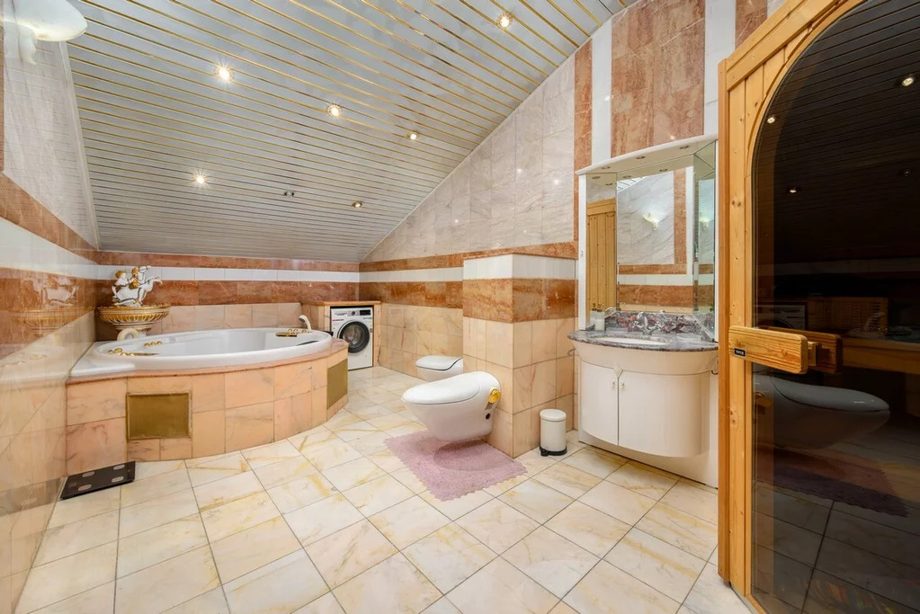 Действующий дровяной камин в мраморном портале, художественный паркет из трёх пород дерева (дуб, ясень, вишня). Полы на кухне, а также отделка лестницы и с/у из натурального камня: мрамор, гранит, оникс.