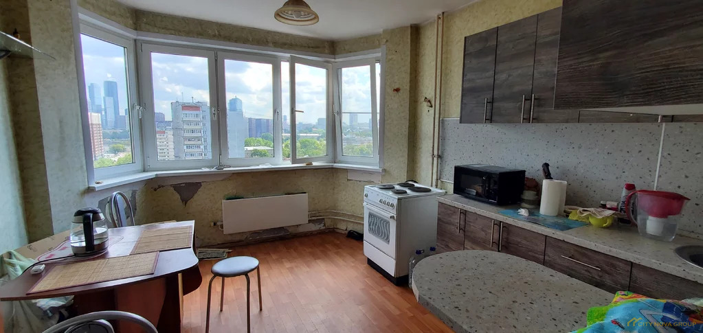 В квартире много света! Комнаты площадью 18.8 и 13.7 м, в одной из комнат балкон 1.4 м, в другой-лоджия 2 м. Кухня большая, 12.9 м с эркером, а высокий этаж открывает прекрасный вид на небоскребы Москва-Сити! Установлены качественные стеклопакеты. Сан-узел раздельный. Просторный коридор.