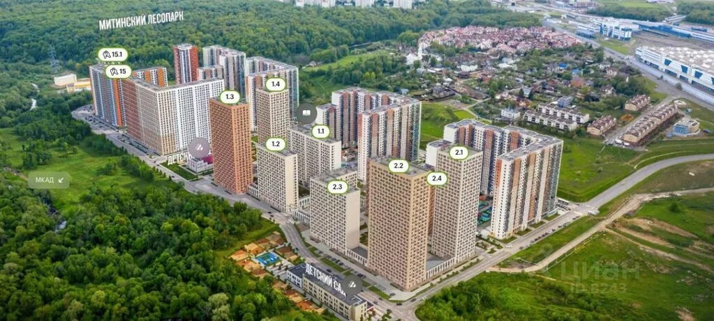 ЖК находится в экологически чистом районе Москвы. В 3 минутах пешком Митинский лесопарк с детскими и спортивными площадками, прудом, беседками, велодорожками и местами для отдыха.