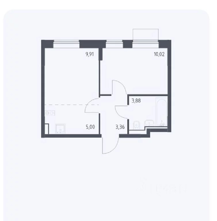 Окна выходят во двор, совмещенный санузел.