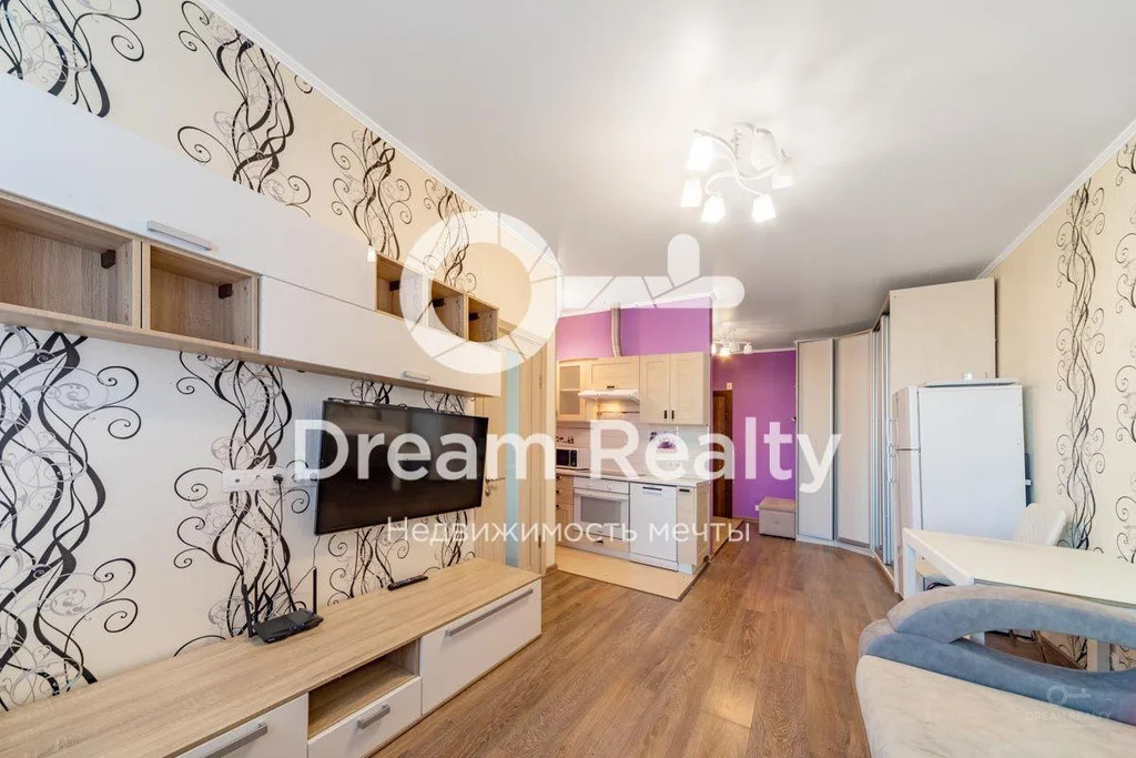 Планировка: кухня-гостиная, спальня, раздельный санузел. Апартамент оборудован необходимой встроенной бытовой техникой: посудомоечная машина, варочная панель, духовой шкаф, холодильник, вытяжка, стиральная машина, телевизор, имеются встроенные шкафы и места для хранения.