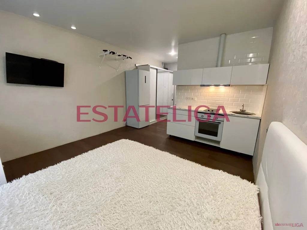 Студия оснащена всей необходимой мебелью и техникой для проживания.