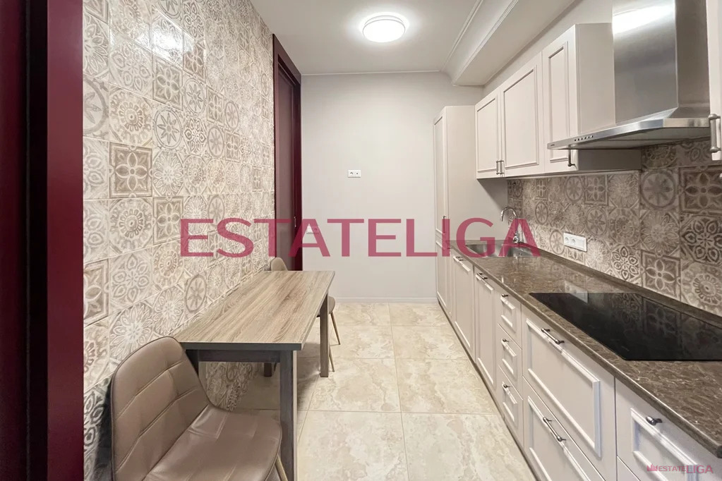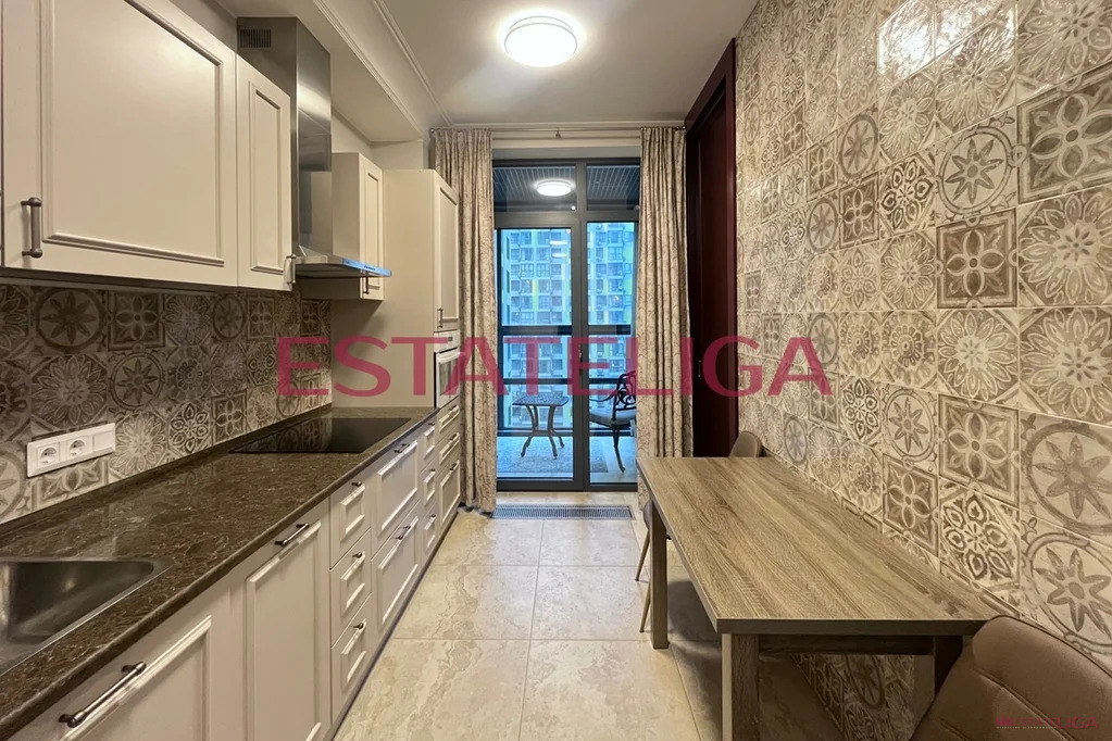 Квартира оборудована всей необходимой бытовой техникой: духовой шкаф, посудомоечная машина, холодильник, варочная панель, вытяжка.