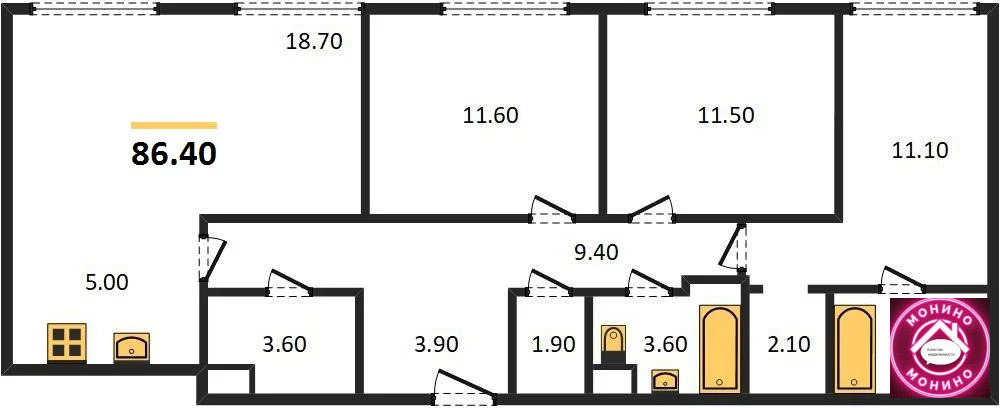 Квартира: 3 к 86,40 кв.м., 13 этаж в комплексе Voxhall, 1 очередь, корп.3, сдача: 4кв. , этажей: 18, адрес Летниковская ул., д. 4/6а, Застройщик: ГК Эталон.