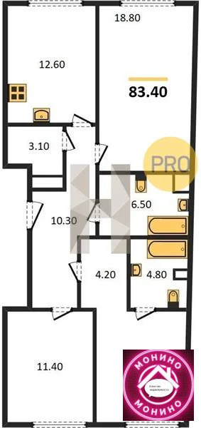 Квартира: 3 к 83,60 кв.м., 2 этаж в комплексе Voxhall, 1 очередь, корп.2, сдача: 4кв. , этажей: 20, адрес Летниковская ул., д. 4/6а, Застройщик: ГК Эталон.