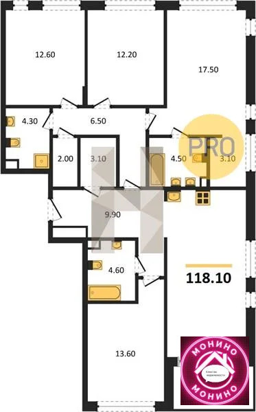 Квартира: 4 к 118,10 кв.м., 12 этаж в комплексе Shagal, 2 очередь, корп.2 (этап 6), сдача: 2кв. , этажей: 17, адрес Автозаводская ул., д. 23/70, Застройщик: ГК Эталон.