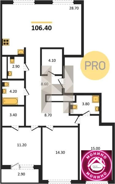 Квартира: 3 к 106,40 кв.м., 9 этаж в комплексе ALIA, 3 очередь, корп.2 (Урбан-блок Park 2), сдача: 4кв. , этажей: 11, адрес Летная ул., д. 95, Застройщик: ASTERUS.