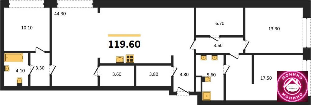 - Общая площадь, м²119.6