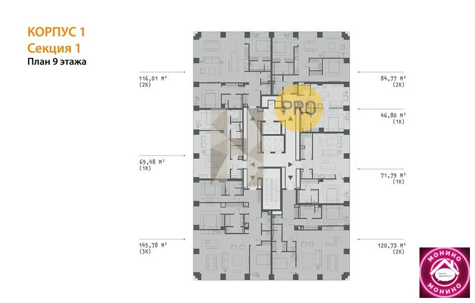 Квартира: 1 к 46,80 кв.м., 9 этаж в комплексе FORUM, 1 очередь, корп.1, сдача: 1кв. , этажей: 13, адрес Садовая-Сухаревская ул., д. 14 стр. 1, Застройщик: MR PRIVATE.
