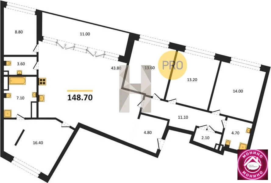 - Общая площадь, м²148.7