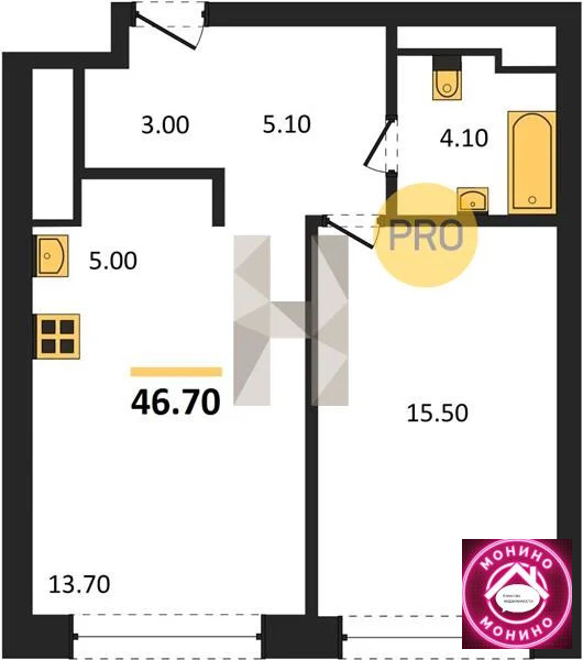 - Общая площадь, м²46.7
