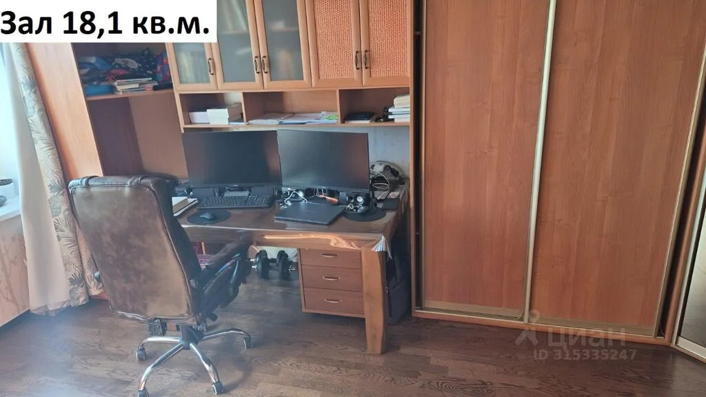 Все комнаты изолированные. Зал 18,1 кв.м. (стенка с угловым зеркальным шкафом и книжными полками), комната 8,5 кв.м. с гардеробной 3,5 кв.м., отдельная гардеробная 6 кв.м., кухня 8,9 кв.м., ванная 3 кв.м. (стиральная машинка), санузел 1,1 кв.м., коридор 10,3 кв.м. (встроенный шкаф-купе). Высота потолков 2,8 м.