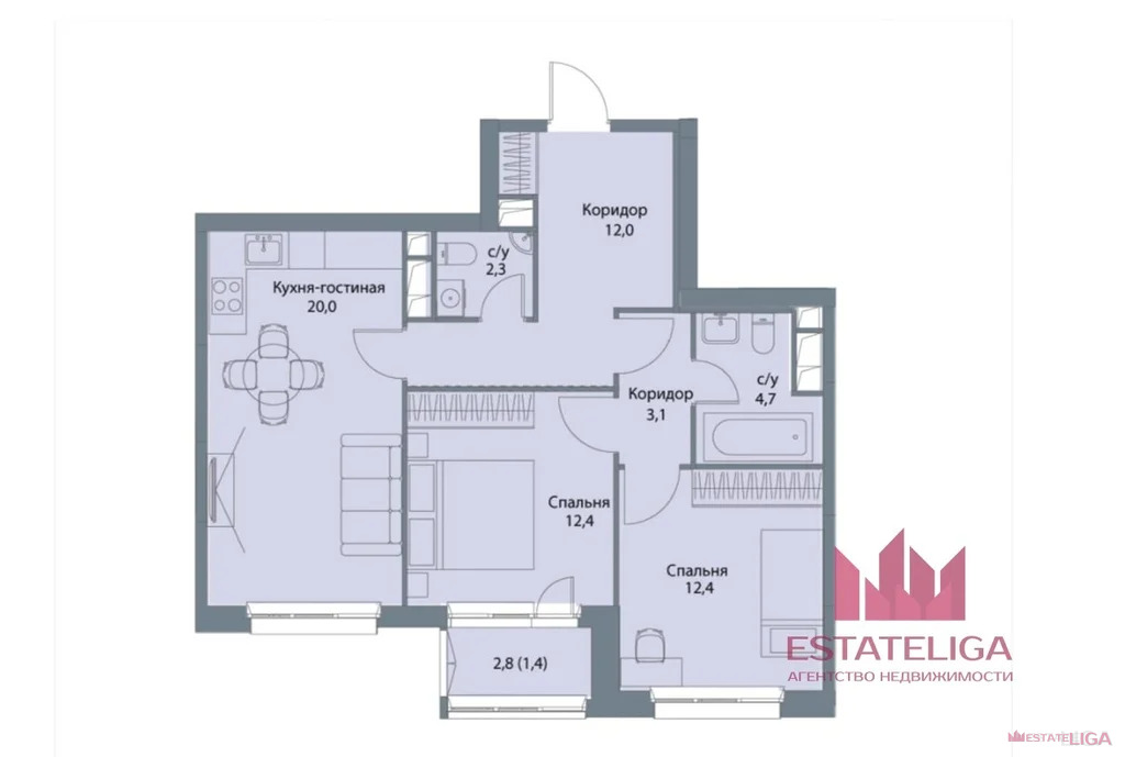 Лоджия: 2,8 кв.м
