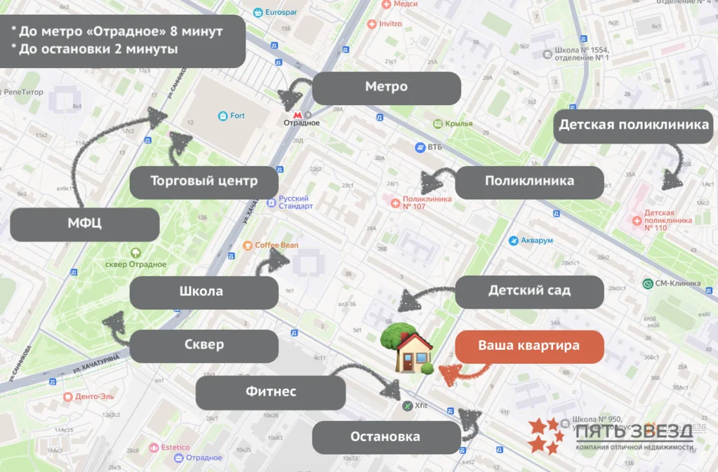* До метро «Отрадное» &8776; 8 минут пешком