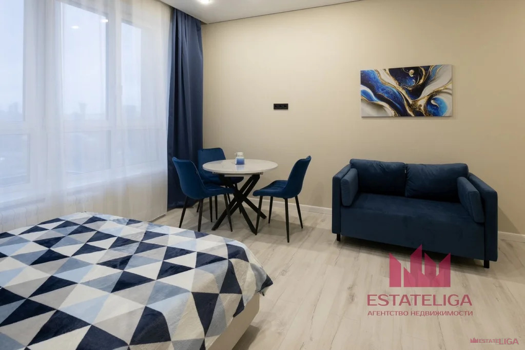 Студия содержит обеденную зону, зону отдыха, прихожая и совмещенный санузел.