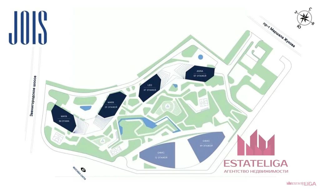 JOIS — это премиальный жилой комплекс от девелопера MR Group в районе Хорошёво-Мнёвники. Он включает несколько эффектных небоскрёбов высотой 47-56 этажей, эксклюзивные форматы квартир с панорамным остеклением, подземный двухуровневый паркинг на 239 м/м, собственную приватную инфраструктуру, закрытый ландшафтный парк 2,3 Га с функциональным зонированием и охраняемой территорией. Над проектом работали лучшие команды международных агентств с многолетним опытом: Genpro, S&P, iLight International и другие.