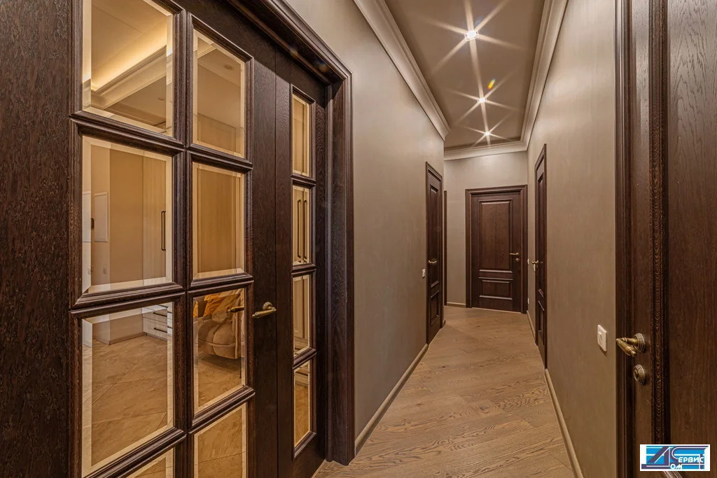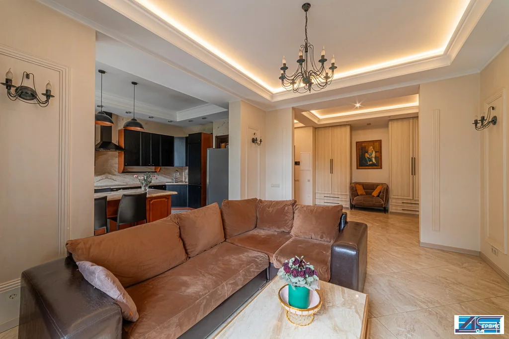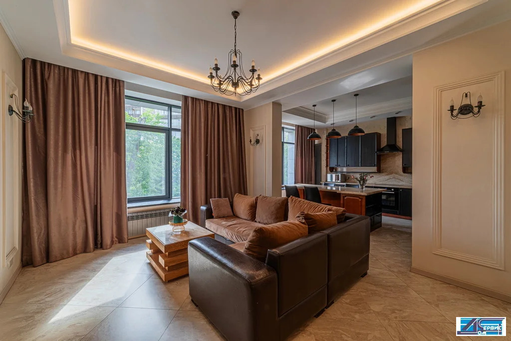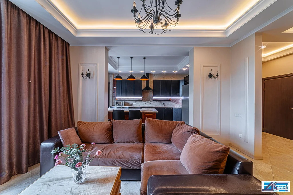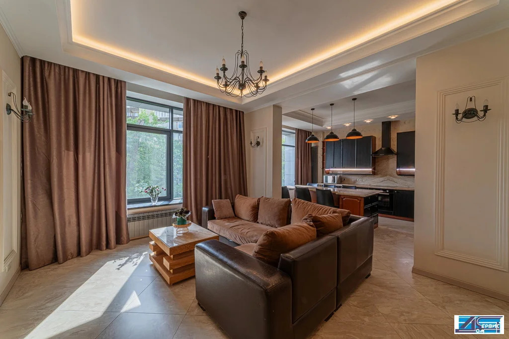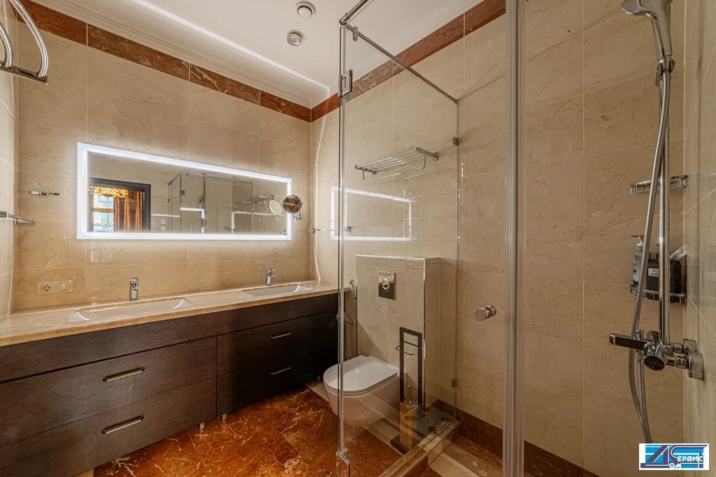 В квартире функционально-продуманная планировка: просторная кухня 16 кв. м, гостиная 20 кв. м, 3 изолированные спальни (19+16+14,5), 3 с/у, гардеробная, постирочная. При ремонте использовались премиальные отделочные материалы, итальянский мрамор, натуральный деревянный паркет, швейцарская сантехника.