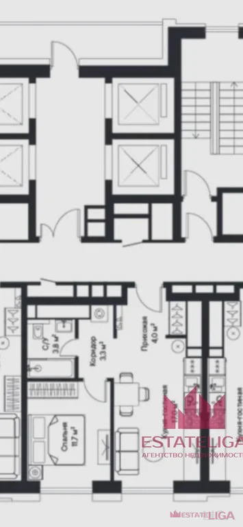 Планировка квартиры - кухня + гостиная, гостевой санузел, + спальня, есть возможность оборудовать гардеробную!