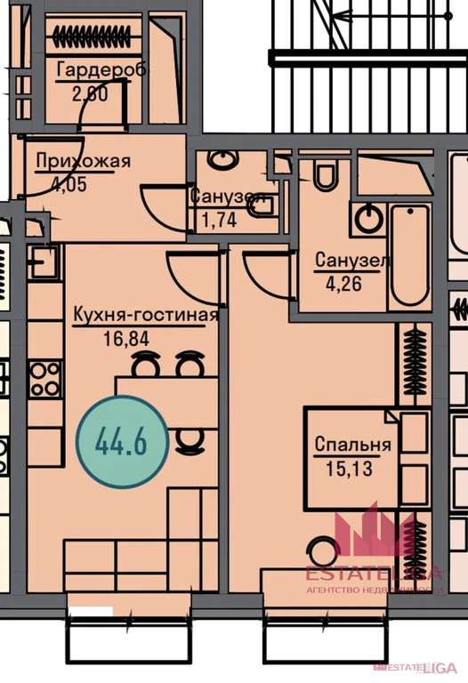Площадь: 45 м • 26 этаж • Собственность оформлена
