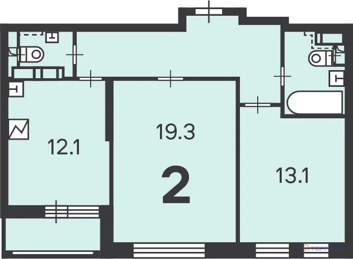Количество комнат: 2