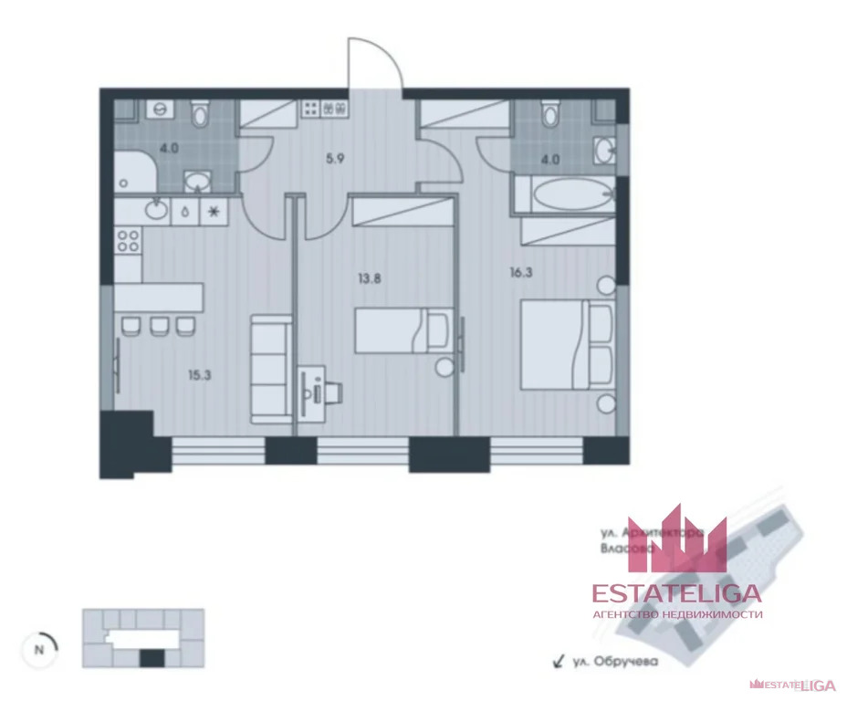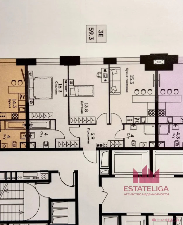 Просторная планировка 59,3 метра квадратных, делают квартиру привлекательной для покупки как семьям с детьми, так и без!