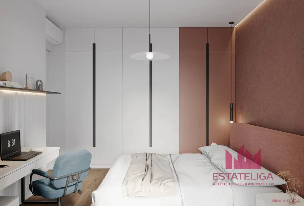 кухню-гостиную 18.6 кв.м., спальню 14.9 кв.м., гардеробную и совмещенный санузел 3.5 кв.м.