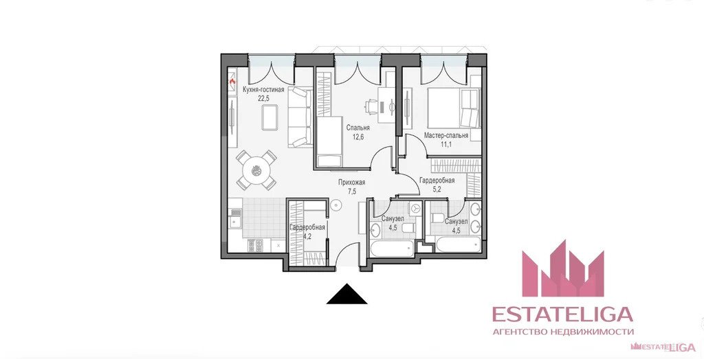 В вашей будущей квартире предусмотрен камин, две гардеробные комнаты и два санузла.
