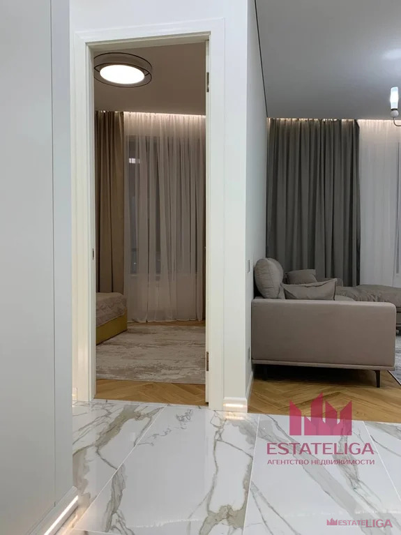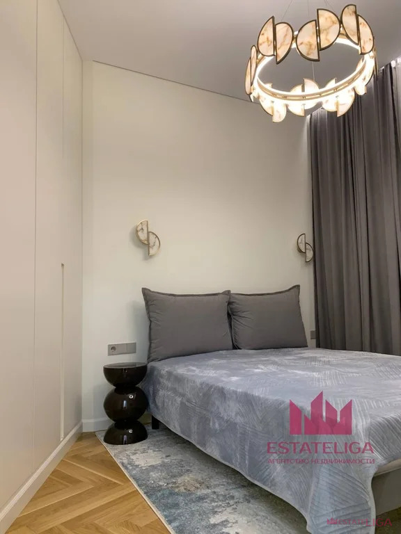 Планировка включает кухню-гостиную, спальню, детскую комнату и санузел. Ремонт выполнен из качественных зарубежных материалов, вся мебель и техника — новые, никем не использовались и не проживались. Квартира полностью меблирована и оснащена современной, надежной техникой.