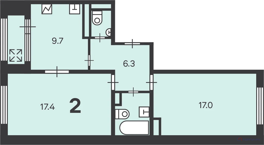 Количество комнат: 2