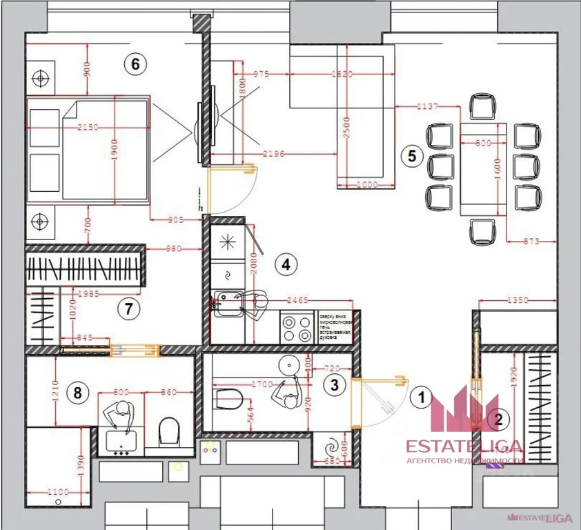 В апартаменте абсолютно новый ремонт, никто не проживал. Апартамент продается со всей встроенной мебелью и техникой!