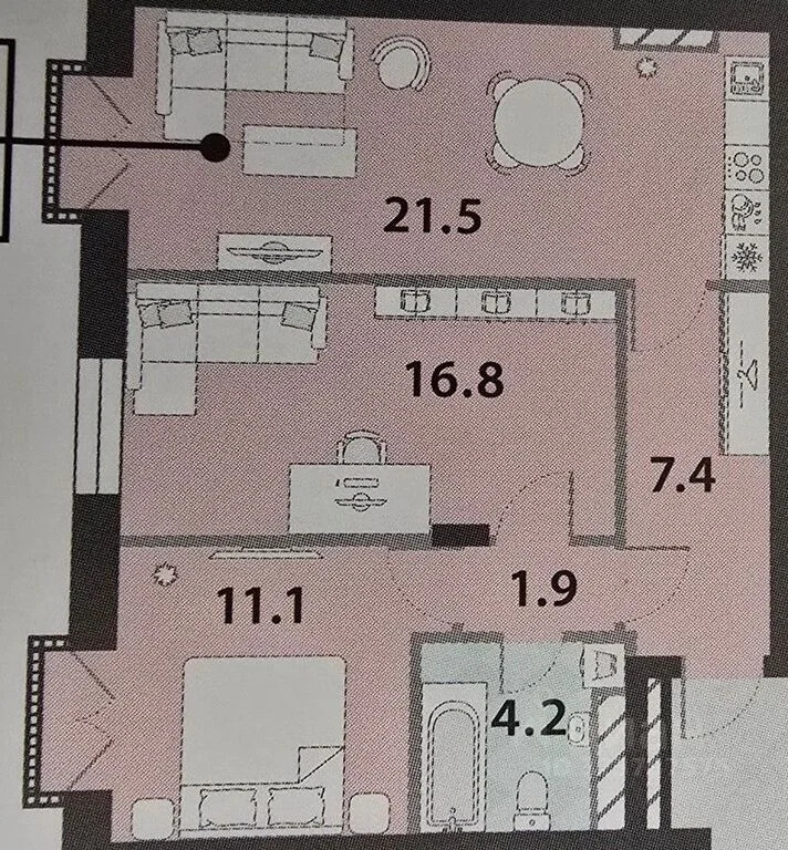 В квартире большая кухня-гостиная 21.5 кв.м, 2 изолированные комнаты 16.8-11.1 кв.м., просторный совмещенный санузел, 2 французских балкона с окнами в пол, высокие потолки 3 м.