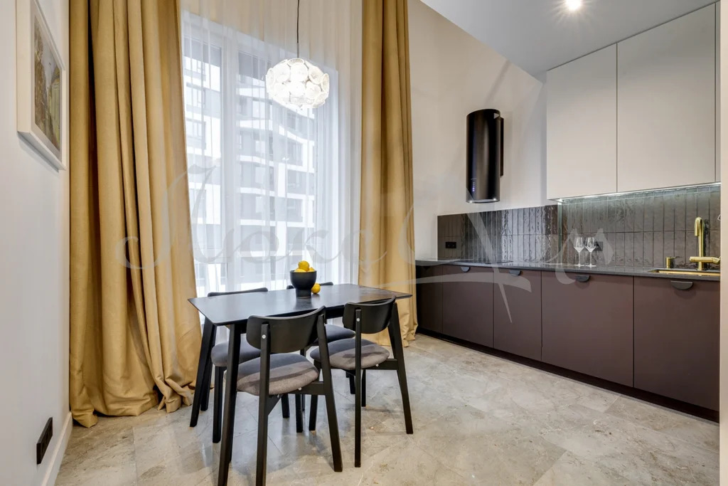 В квартире выполнена высококачественная отделка, использованы дорогие натуральные материалы.