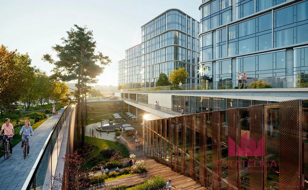 Внутренняя территория охраняемая и приватная, на ней выполнен ландшафтный дизайн. Все дома объединяет общий стилобат, в котором находятся подземные паркинги. Во дворе расположены современные детские и спортивные площадки, площадка для игры в баскетбол, места для дресировки и выгула собак, а также свой детский сад. Инфраструктура жилого комплекса развита, в распоряжении жильцов: фитнес-центр, спа и бассейн, океанариум, кинотеатр, йога, онсен и пилатес, теннисный корт, столы для настольного тенниса, бильярдные и зоны для барбекю.