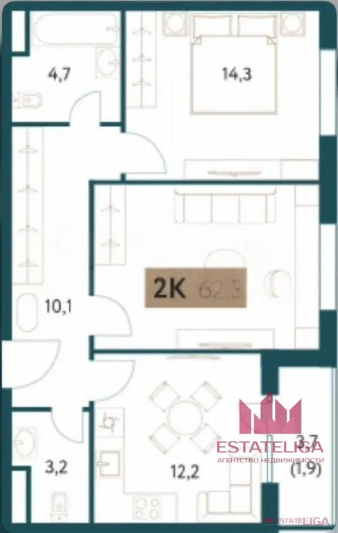 - Уникальная планировка, Компактная уютная спальня, гостевая ТВ-зона отдыха, большой санузел и просторная кухня-гостиная!