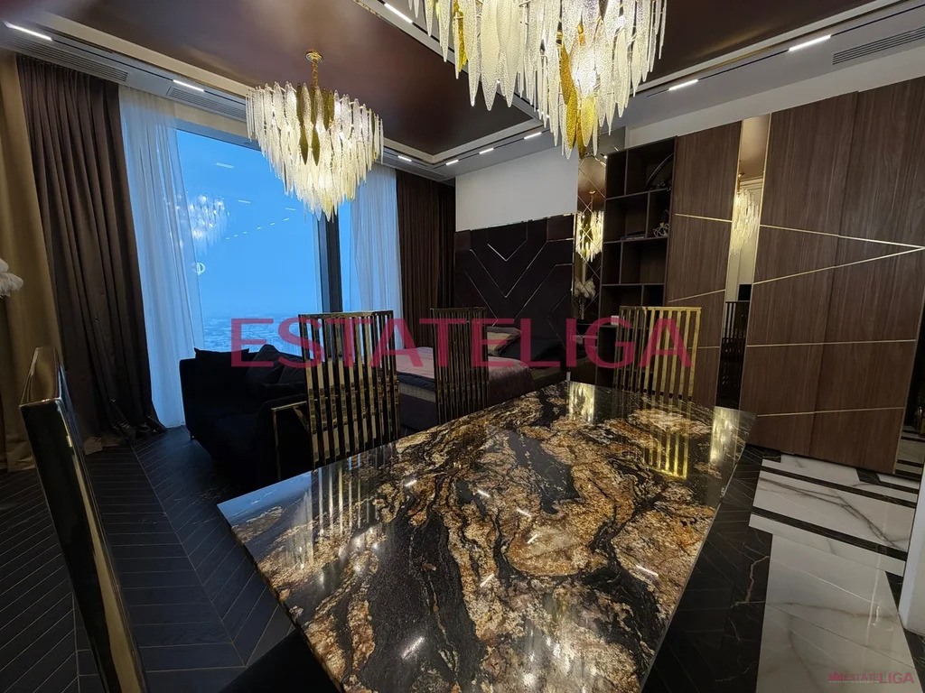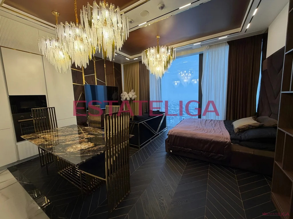 Студия с современным дизайнерским ремонтом, расположенная на 57 этаже нового корпуса 2020 года постройки. Студия полностью готова к проживанию — оборудована мебелью, встроенной техникой, благодаря высокому этажу открывается прекрасный вид на центр города, Москву реку и Филевский парк.